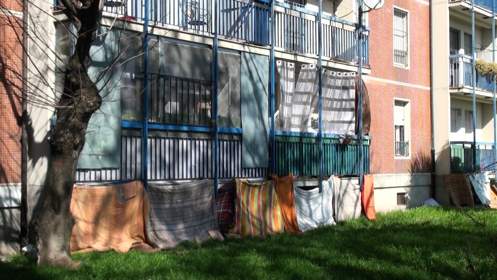 Nelle foto il degrado del quartiere Gratosoglio (spazzatura diffusa e accampamenti sotto i balconi dei palazzi)
