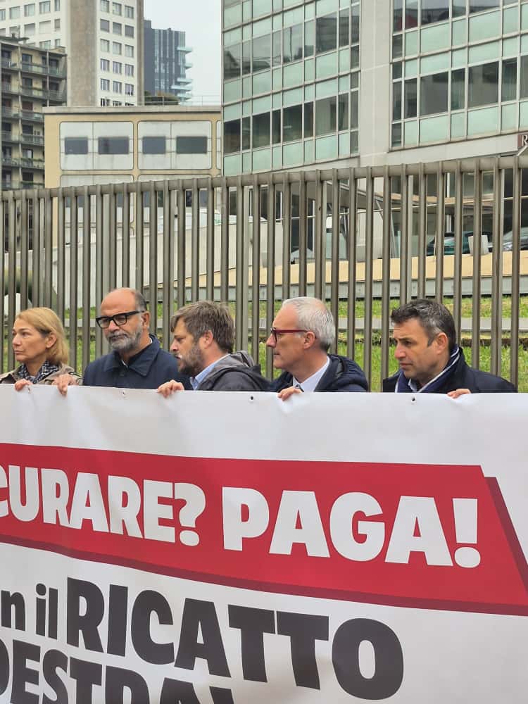 Questa mattina le consigliere e i consiglieri regionali del Partito Democratico, esponendo lo striscione “Vuoi farti curare? Paga! Basta con il ricatto della destra”, si sono uniti al presidio che si è tenuto in piazza Duca d’Aosta, sotto Palazzo Pirelli, per sostenere le ragioni della legge di iniziativa popolare per cambiare la sanità lombarda, in discussione oggi in Consiglio regionale.