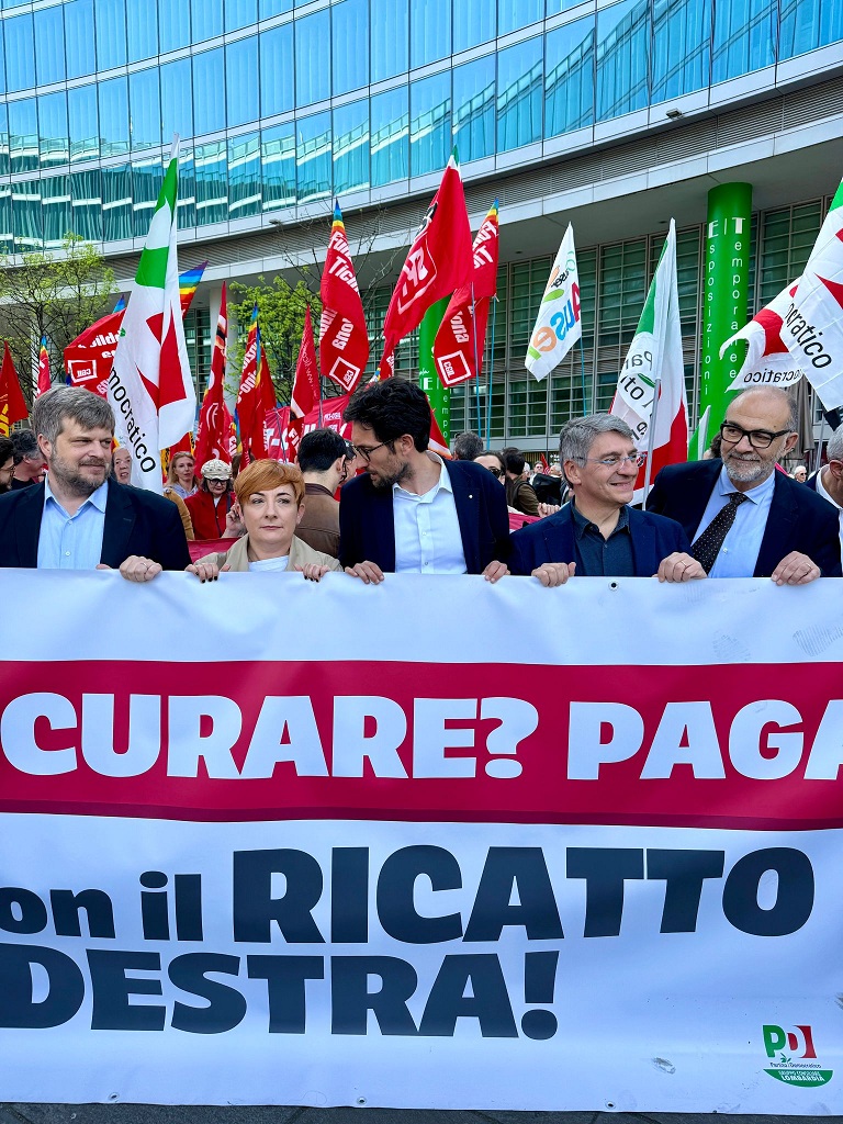 Gli ha fatto eco la collega consigliera Miriam Cominelli: “La nostra è una sanità d’eccellenza, ma sempre più irraggiungibile ai molti. Non è possibile dover pagare di tasca propria per delle cure che ci spettano e ci spettano anche perché previste dalla Costituzione. Ormai il sistema lombardo non regge più e non può essere preso a modello per il livello nazionale. Oggi siamo scesi in piazza proprio per ribadire la necessità di un cambio di rotta assolutamente necessario e urgente”.