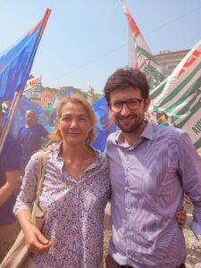 Davide Casati e Roberta Vallacchi a Bergamo hanno sfilato accanto a lavoratrici e lavoratori metalmeccanici di Fiom-Cgil, Fim-Cisl e Uilm, ancora in sciopero unitario a un anno dalla scadenza del contratto nazionale di lavoro e dopo 40 ore di sciopero già effettuate