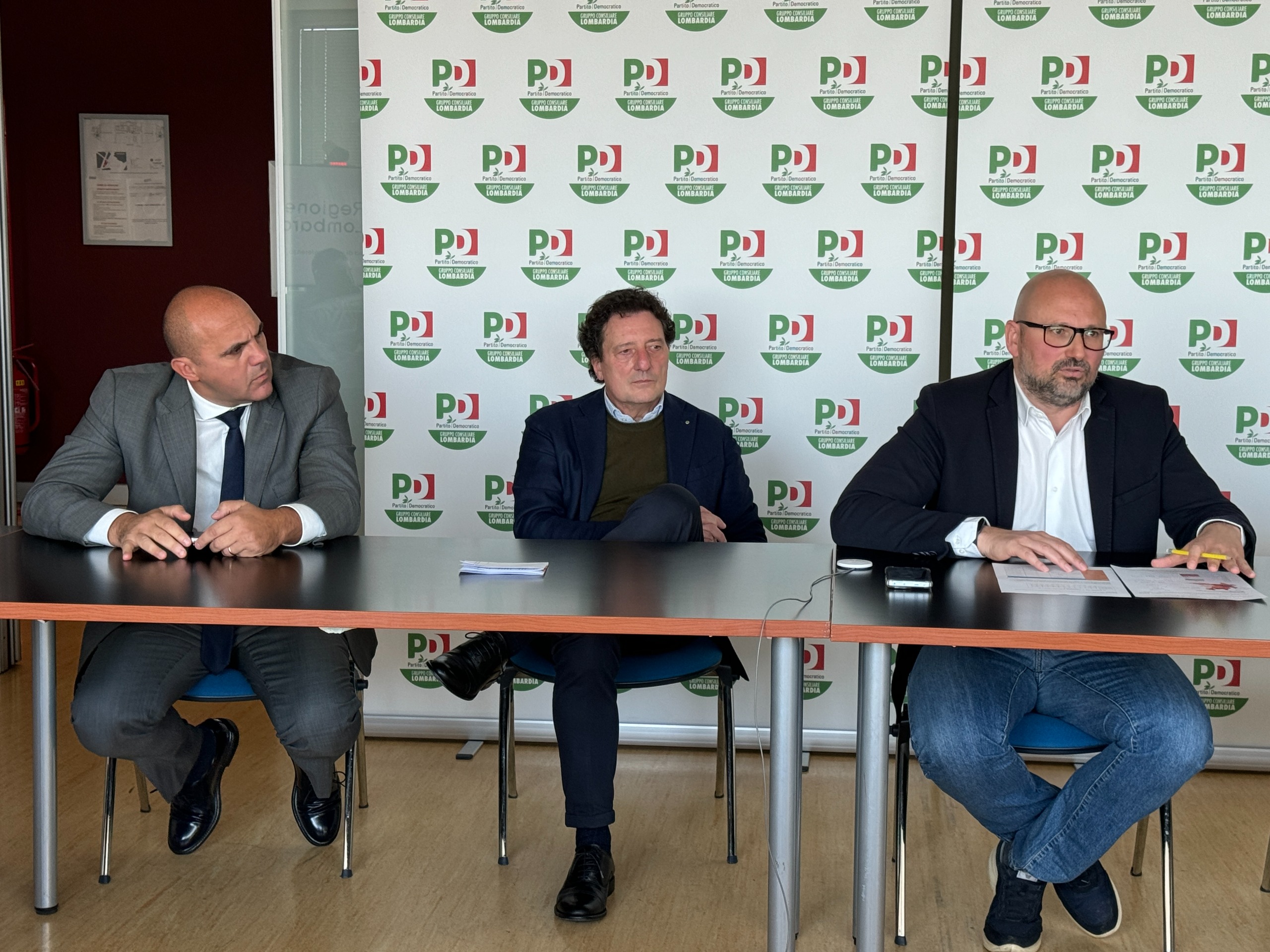 Simone Negri, Gigi Ponti e Gian Mario Fragomeli hanno presentato alla stampa le proposte del Pd per cambiare la riforma su trasporto pubblico locale